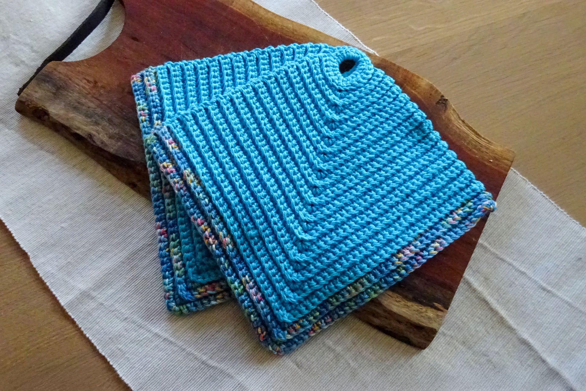 Topflappen "Retro-Rippenmuster" blau & multicolor, mehrfarbig